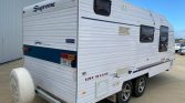 Amenities/Features : 3 Way Fridge, Air Conditioning, Awning, Bench Seats, Cooktop, Dining Table, Double Bed, Gas Bottle Holders, Grill, Hot Water System, Jockey Wheel, Breakwawy electric braking, Microwave, Oven, Reading Lamps, Shower, Sink, Spare tyre, Sky Lights, Stabiliser Legs, Stereo System, Toilet, TV & antennae, Under Bed Storage, Water Tanks,Grey water tank, Fold Out…