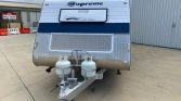 Amenities/Features : 3 Way Fridge, Air Conditioning, Awning, Bench Seats, Cooktop, Dining Table, Double Bed, Gas Bottle Holders, Grill, Hot Water System, Jockey Wheel, Breakwawy electric braking, Microwave, Oven, Reading Lamps, Shower, Sink, Spare tyre, Sky Lights, Stabiliser Legs, Stereo System, Toilet, TV & antennae, Under Bed Storage, Water Tanks,Grey water tank, Fold Out Solar Panel